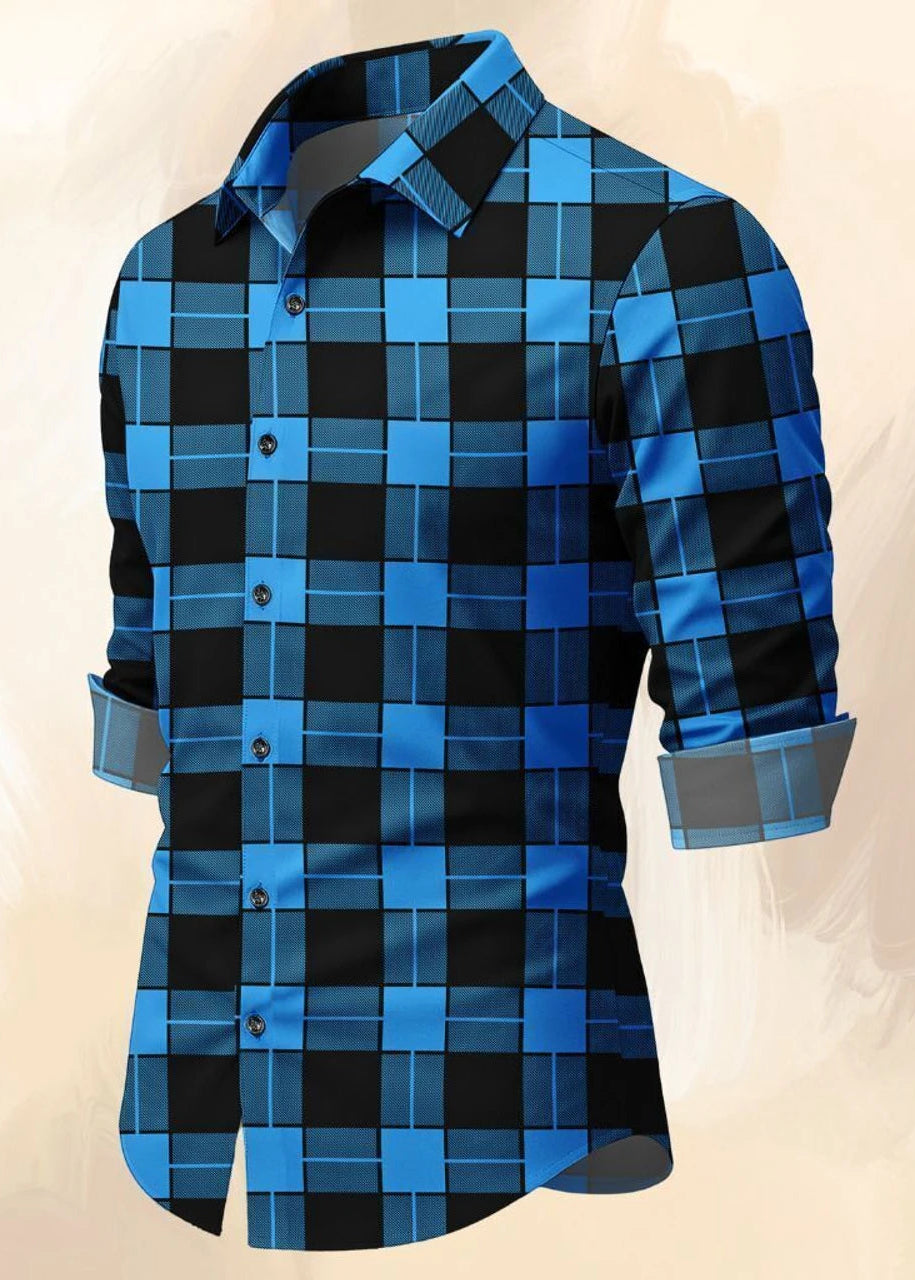 Capkin Collections Men's Digital Checkered Casual Shirt – Electric Blue & Black